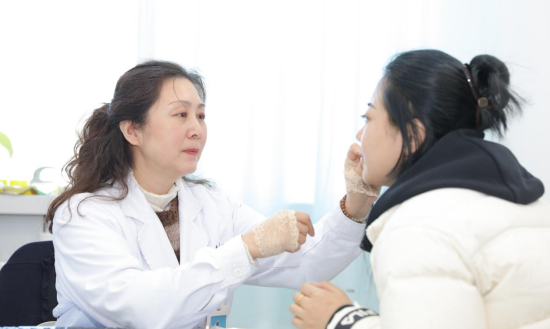 群力院区皮肤科诊室内,蔡丽敏教授正为急性皮炎患者查体,她提示过年美食诱人,但过敏体质和皮肤敏感人群要格外留意。