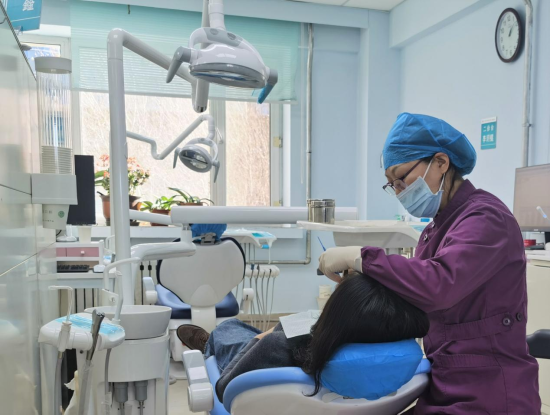 初四,口腔修复科孙宇教授正为一名义齿松动的女士进行治疗。孙宇教授介绍,春节期间口腔修复科共接诊患者89人次,他们多因吃过硬、过黏食物,或用牙齿开瓶而引发的义齿松动脱落、牙冠崩裂、牙齿敏感疼痛、咬合不适。孙宇教授提示,若出现修复体损坏、剧烈牙痛等情况,需及时就诊。