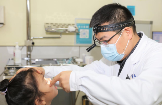 耳鼻喉科王启威教授为一名疑似鼾症的6岁儿童进行检查。王启威教授介绍,冬季儿童出现耳鼻咽喉疾病增多,家长一定要及时到医院检查治疗,避免贻误病情。