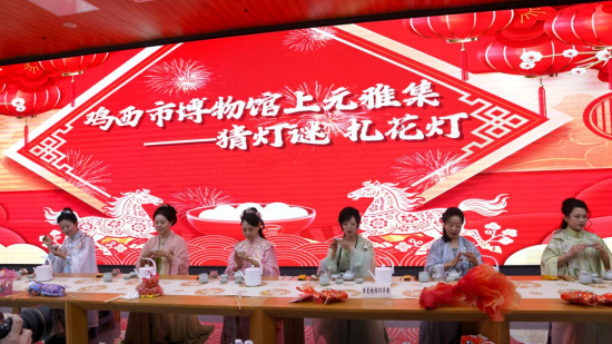 中新网黑龙江新闻3月3日电(张默 魏莹)3月1日,鸡西市“上元雅集”元宵节主题文化活动在市博物馆成功举办,本次活动以猜灯谜、扎花灯、汉服茶艺、琴鼓和鸣等沉浸式体验,让市民在博物馆里感受传统年俗魅力,共度温馨雅致的元宵佳节。