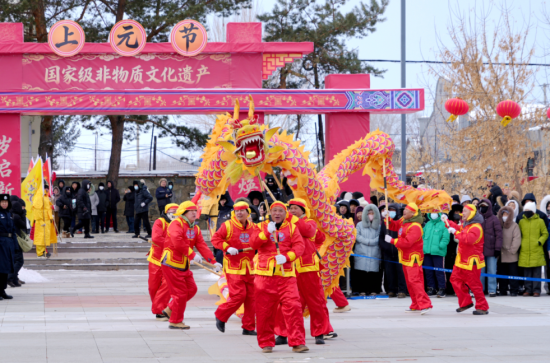 迎宾区内,原创舞蹈《铁衣戍瑷珲》首次亮相,与《将军战鼓》、八旗士兵巡游等节目共同展现瑷珲戍边历史。盛典区重现立灯官、抹花谜、迎五谷瓶等百年民俗,满族、达斡尔族等民族文化元素融入其中,寄托风调雨顺的美好愿景。舞龙舞狮翻腾跳跃,引得游客阵阵喝彩。“听到鼓点就心潮澎湃,仿佛穿越回了瑷珲古城的峥嵘岁月。”来自哈尔滨的游客周航举着相机不停拍摄,直呼沉浸式体验拉满。