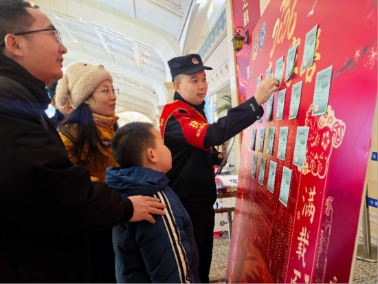 哈尔滨西站派出所、哈尔滨东站派出所、双城北站派出所、肇东站派出所以“警民同乐、普法宣传”为重点,组织青年民警在候车大厅为旅客答疑解惑、帮助重点旅客进站乘车,警民之间的温馨互动让传统佳节充满了别样的“警”色。在哈尔滨站,民警在候车大厅引导候车旅客参与“灯谜竞猜闹元宵,安全出行我护航”主题宣传活动,猜灯谜环节民警与旅客热情互动,共同庆祝旅途中的别样元宵佳节。