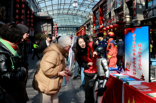 政务服务区前,市民们自觉排起整齐的队伍,脸上带着期待的笑容。市卫健委、市医保局、市不动产登记中心等单位的志愿者端坐桌前,耐心倾听每一个疑问,手中的笔不时在纸上标记要点。市司法局的东北三省首位人形普法机器人“佳小法”现场助阵,用清晰易懂的语言解答市民提出的法律问题,让严肃的普法宣传变得生动有趣。“我和老伴年纪大了,眼神不好,对这些政策条文看得一头雾水,不仅有机器人有趣地讲解,还有工作人员给我们圈重点,心里踏实多了!” 市民李寿贵说。