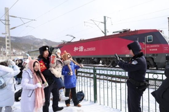 中新网黑龙江新闻3月6日电(林轩)北国风光,千里冰封。时值隆冬,黑龙江省的“冰雪经济”随着呼啸的火车,驶入了一年中最火热的季节。在哈尔滨的辐射带动下,沿线如珍珠般散落的冰雪小镇迎来了天南海北的游客。春运大幕开启,人流如织,让我们跟随铁路公安民警的脚步,感受铁警为银装素裹的世界增添的那一抹“平安底色”与“服务暖色”。