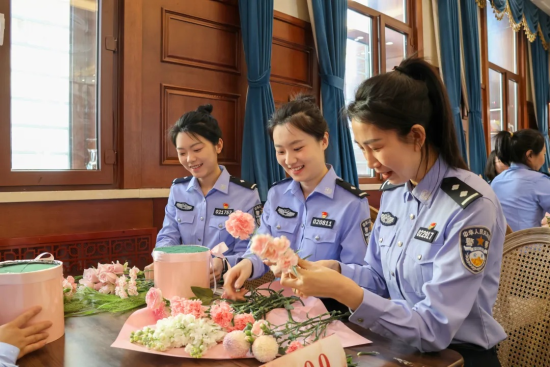 中新网黑龙江新闻3月7日电(刘新宇)3月6日,“三八”国际妇女节来临之际,哈尔滨铁路公安处在百年历史建筑哈尔滨城市客厅举办“书香警韵 花香匠心”主题文化活动,以插花、读书分享、蛋糕DIY等温馨形式,为女警送上节日祝福,这也是公安处扎实推进爱警暖警工作的具体措施。