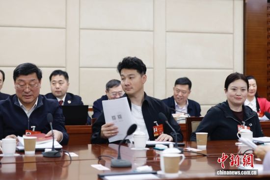 3月10日,十四届全国人大四次会议黑龙江代表团举行小组会议。图为全国人大代表任子威参加小组会。