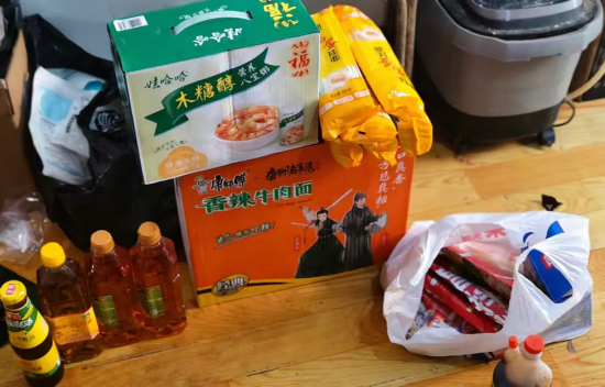 在手续办理的过渡期,温暖并未“空窗”。网格员们自发组织捐款,为这位居民送去了方便面、挂面、豆油、八宝粥等生活必需品。更令人动容的是,他们还细心准备了帮助调节代谢的玉米须和甜甜的糖果——这些看似微小的细节,却承载着家人般的体贴与关怀。当这些物品送到居民手中时,传递的不只是物资,更是满满的尊重与温情。