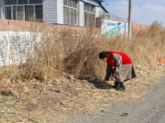 知识学习过后,大家身穿红马甲深入镇村的主要街道、房前屋后等区域,开展垃圾清理,大家充分发扬“不怕苦、不怕脏、不怕累”的工作精神,积极为清理环境卫生作贡献。