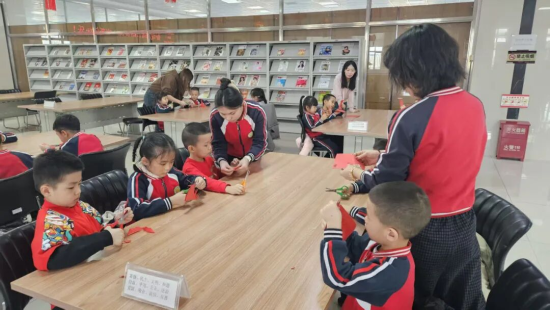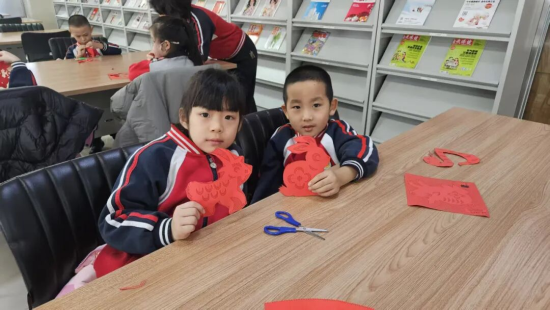 活动现场暖意融融,工作人员与志愿者耐心讲解剪纸知识,从基础折法到简单纹样,手把手指导孩子们操作。一把把小剪刀轻轻游走,一张张红纸在指尖翻转,窗花、福字、小动物等造型渐渐成型。孩子们专注又投入,不时互相展示作品,欢声笑语充满整个阅览室。