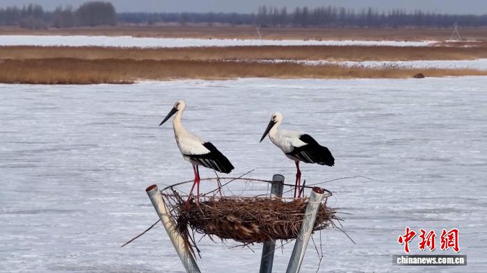 首批东方白鹳飞抵黑龙江嘟噜河湿地