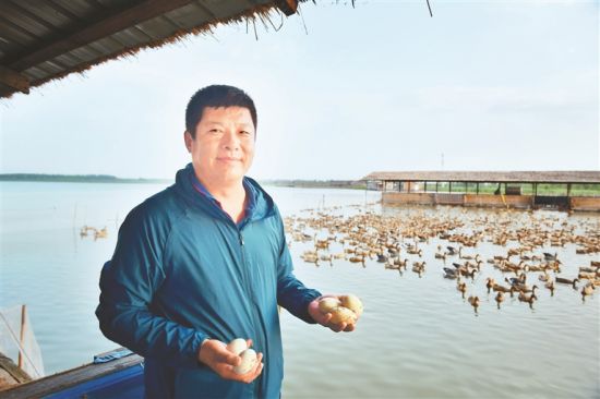 据养殖场负责人蔡喜利介绍,养鸭场前身是鸿雁特种养殖专业合作社,去年,随着国家政策调整,合作社将2万多只鸿雁放飞大自然。今年,他们又利用龙腾湖水面,带领农民搞起金定麻鸭的饲养,还建起了鸭蛋加工厂。现在,每天3万只鸭子产蛋2万多枚,预计产值达到1000万元。