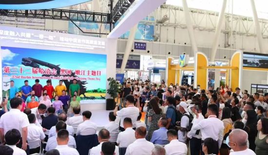 中新网黑龙江你6月17日电(范家林 田健明)盛夏六月、绚丽冰城,第32届哈尔滨国际经济贸易洽谈会精彩盛放,今天的黑河展厅为“嫩江主题日”,来自嫩江市的企业惊艳亮相,引来不少客商和嘉宾驻足观看。黑河市委副书记、政府市长赵荣国,市委常委、政府副市长石菊松,政府副市长刘洋,嫩江市委书记刘铭,市委副书记、政府市长崔凯,市委常委、宣传部部长孙颖健,政府副市长王健、卜学强,相关单位和参展企业负责人参加。