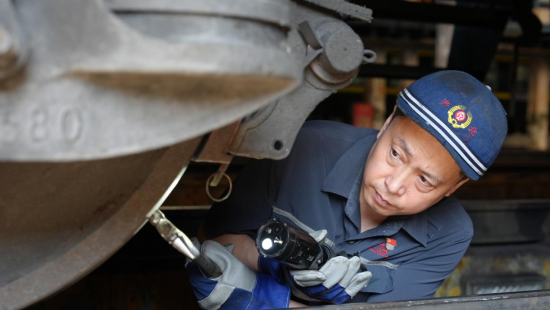 刘志伟正在对列车进行全面检查 赵家毅 摄