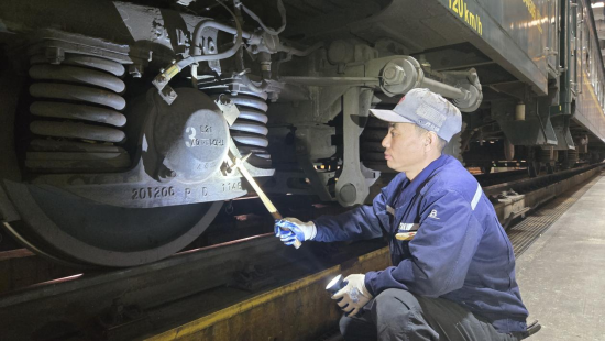 中新网黑龙江新闻10月28日电(纪锋 赵家毅)10月20日,中国铁路哈尔滨局集团公司齐齐哈尔北车辆段整备库内,包车一班组工长谷海涛手拿图纸蹲在地上,指尖沿着标注线细致讲解;刘志伟俯身在转向架旁,手把手指导年轻人操作流程;孙丽奎紧握笔记本,目光追随着师傅的每个动作快速记录。他们每天的工作就是对运行一个周期后的旅客列车进行保养工作,消除安全隐患,保证列车安全,让旅客顺利到达目的地。这三代铁路人并肩工作的场景,生动诠释着这个车间人才培养的独特模式——既珍视宝贵经验,又鼓励创新思维,通过“传帮带”的纽带,让匠心精神在铁轨旁生生不息。
