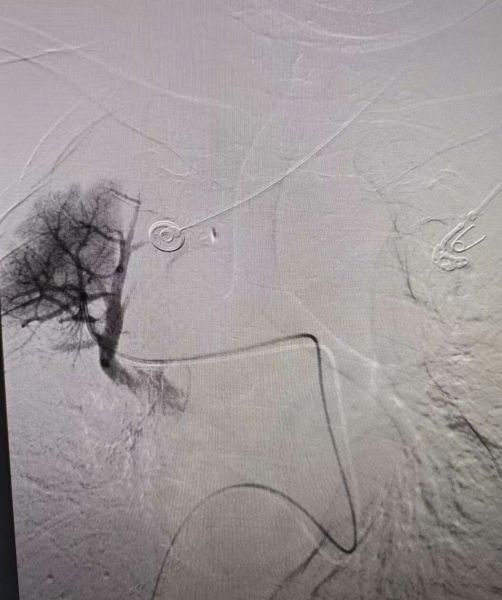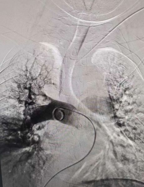 右肺动脉术后造影:闭塞血管开通