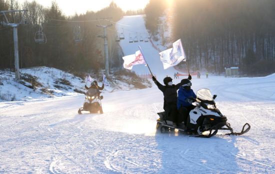 图为俄罗斯游客体验雪地摩托(图片由樊思雨摄)