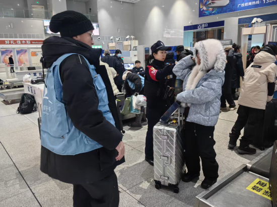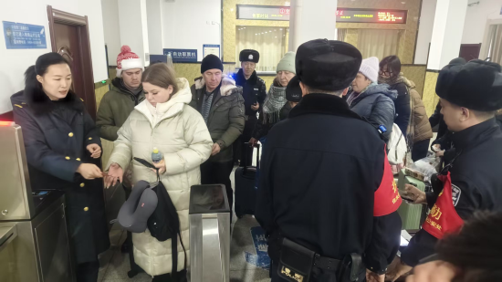 中新网黑龙江新闻12月31日电(高兵)随着冰雪旅游热度攀升,团体旅客也逐渐增多。佳木斯铁路警方积极应对客流变化,用暖心服务帮助团体旅客顺利出行。