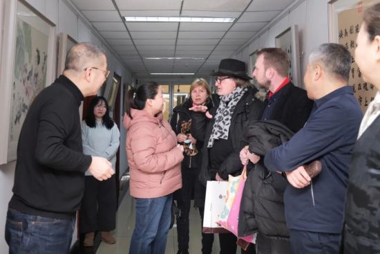 上午,在市文联工作人员的陪同下,三位诗人参观了文联办公区域,走廊内悬挂的美术、书法作品成为文化交流的首个窗口,市文联工作人员详细介绍了作品的创作背景与艺术价值,让德国诗人在笔墨书香中直观感受哈尔滨作为“中国诗歌之城”的深厚文化底蕴。