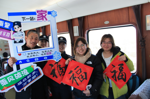 “温暖旅途号”:提供暖心姜茶,设置祈福板供旅客书写新年愿景。