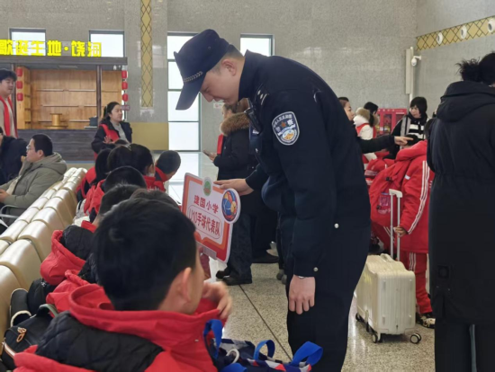 双鸭山西站派出所民警向小队员们宣讲出行注意事项