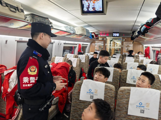 上午10时28分许,小运动员们准时搭乘由双鸭山站开往北京朝阳站的G3514次列车,佳木斯铁路公安处乘警支队刘松正是本次列车的值乘民警。考虑到小队员们乘车时间较长,为了保证旅途顺利,民警主动与带队老师沟通,在车厢搭建起了“流动”的安全课堂。