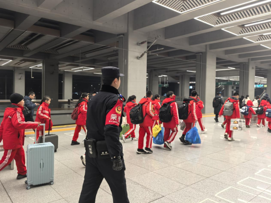中新网黑龙江新闻2月3日电高兵)1月30日,黑龙江省双鸭山市一小学的手球队队员,准备乘火车前往北京参加比赛。为了确保小队员们安全、准时、顺利到达,佳木斯铁路警方暖心接力,开辟绿色通道,全力护航小队员们顺利出征。