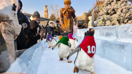 在特色演艺方面,该度假区独家原创冬日户外“企鹅赛跑”,受到了广泛关注。萌态十足的企鹅组成“参赛阵容”,在专属赛道上展开趣味竞速,游客朋友可以现场为心仪的企鹅加油,在冰天雪地中近距离感受极地企鹅带来的欢乐体验。