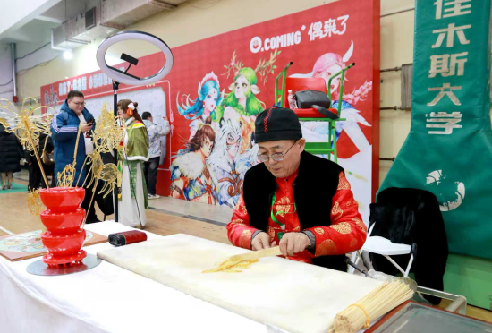 非遗产品展示区里,糖画、拌面等非遗美食香气四溢,让人垂涎欲滴。游客们不仅可以品尝美食,还能参与非遗手艺互动,亲身体验传统文化的魅力。集章做游戏得奖品等活动也深受大家喜爱,现场欢声笑语不断。“我第一次来到佳木斯,这场活动举办得太好了,不仅有精彩的动漫元素,还能感受到本地的非遗,这种传统与潮流的融合太有创意了。”来自双鸭山市的动漫爱好者孙善鹏说道。