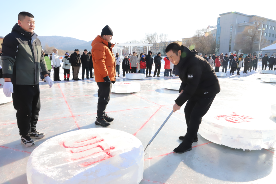另一边,巨型冰面棋盘格外醒目,家长们化身“执棋手”,根据裁判员的指示在冰面上精准推动巨型棋子。冰面滑行、默契配合、合力落子,将桌面棋局同步“搬”到冰上,传统象棋瞬间变得动感十足。家长与孩子隔空呼应、默契联动,既考验孩子的棋艺策略,也增进亲子间的沟通协作,现场掌声、笑声、加油声此起彼伏,洋溢着温馨欢乐的氛围。不少家长表示,这种创新形式让象棋“活”起来、冰雪“暖”起来,既让孩子感受传统棋文化,又留下珍贵的亲子回忆。