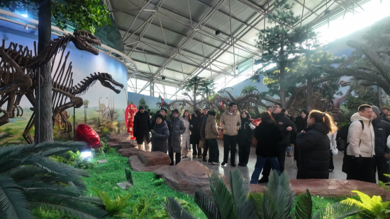 活动首站来到嘉荫恐龙国家地质公园。在专业讲解员的引导下,大家驻足观赏珍贵的恐龙化石,亲手触摸历经岁月沉淀的龙骨,认真聆听地质演化的传奇故事,沉浸式感受白垩纪时期的远古奥秘。AR、VR等前沿科技打造的沉浸式交互娱乐项目,让军娃们仿佛穿越时空,置身于真实的恐龙世界,也让军嫂们暂时卸下生活的忙碌,尽情享受亲子相伴的美好时光。现场,拓印福字特色活动吸引了大家踊跃参与,古老恐龙文化与新春民俗碰撞交融,让军属们在欢声笑语中领略了嘉荫独特的文旅魅力。