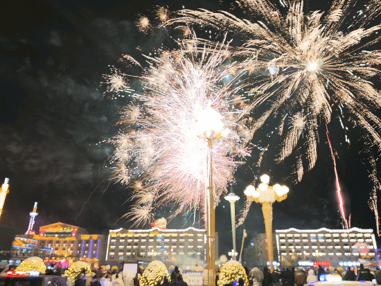 中新网黑龙江新闻3月4日电(王婷 叶兵)3日元宵佳节,大兴安岭呼玛县人民广场夜空,绚烂烟花次第绽放,为游客和呼玛县居民送上了一份团圆喜乐的节日祝福。