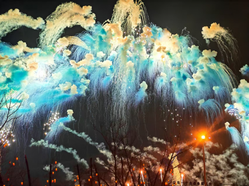 无人机刚刚缓缓落下,只见一朵朵绽放的礼花腾空而起,天空布满了五彩斑斓的礼花,开放的礼花如一个个彩球,似一朵朵雪花,像一颗颗拖着彩带的流星,把漆黑的夜空照的如同白昼一样,把元宵之夜变得无比美丽,人们纷纷拿出手机拍照,希望将这美丽的瞬间留下,并在璀璨的烟花中展望美好的2026。