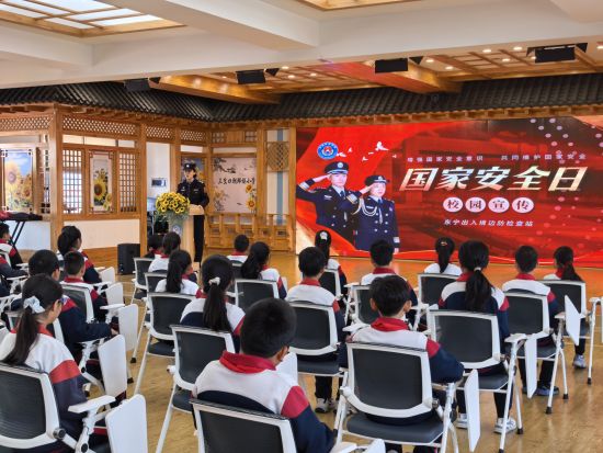 东宁出入境边防检查站联合东宁市委社会工作部、三岔口镇人民政府等单位,共同走进三岔口朝鲜族小学,开展“强化安全意识,筑牢国家防线,4·15国家安全教育进校园”主题宣传活动。活动摒弃传统宣教模式,创新设置知识宣讲、互动问答等环节,让国家安全理念在校园落地生根、浸润童心。
