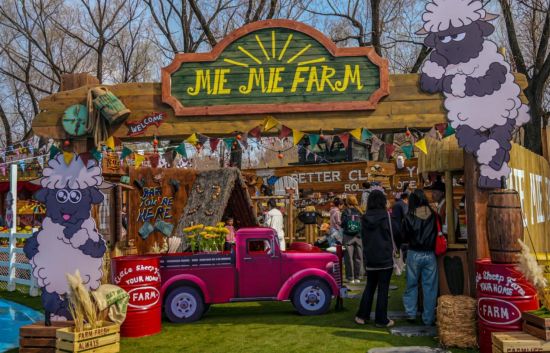 走进农场,浓郁的田园气息扑面而来。在牧场体验区,憨态可掬的瓦莱黑鼻羊与活泼亲人的尼日利亚矮山羊与游客零距离互动;美式酒吧、印第安风插画墙等50余处休闲点位,随手一拍即成异域风情大片。同时,农场推出以瓦莱黑鼻羊为原型的原创动物IP——“夹克”与“肉丝儿”,游客可前往文创市集区挑选心仪的IP衍生品,或品尝特色主题美食。此外,农场专门开辟了宠物友好区,配备宠物娱乐设施、饮水及清洁用品,方便主人与爱宠共享温馨时光。