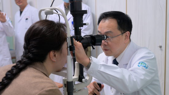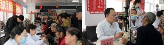 民进哈医大总支主委、哈医大二院眼科主任孙大卫教授为患者检查眼疾