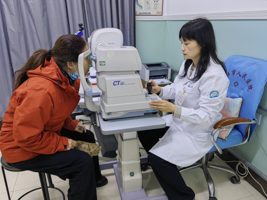 哈医大二院眼科护士长李新雨副主任护师为患者测量眼压